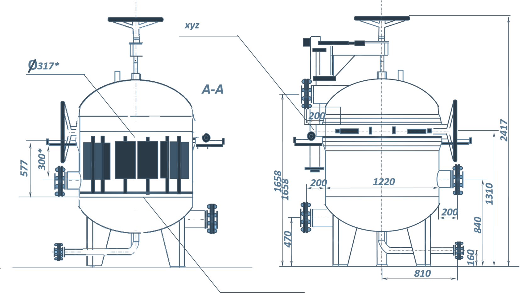 Скопившаяся вода сливается через сливной патрубок, расположенный в нижней части корпуса фильтра.